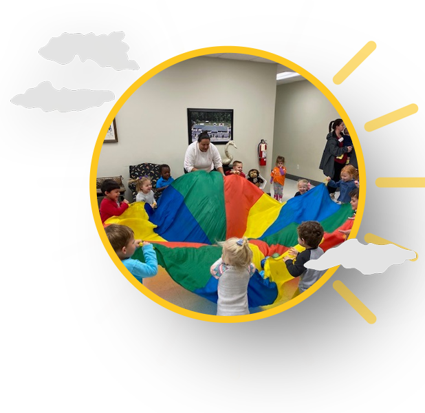 Teachers in the toddler classroom focus on language development, improving self-help skills, modeling good health practices and food habits, and developing gross motor skills. Toddlers produce art projects and are introduced to a structured environment, which contains learning centers and follows a daily routine.